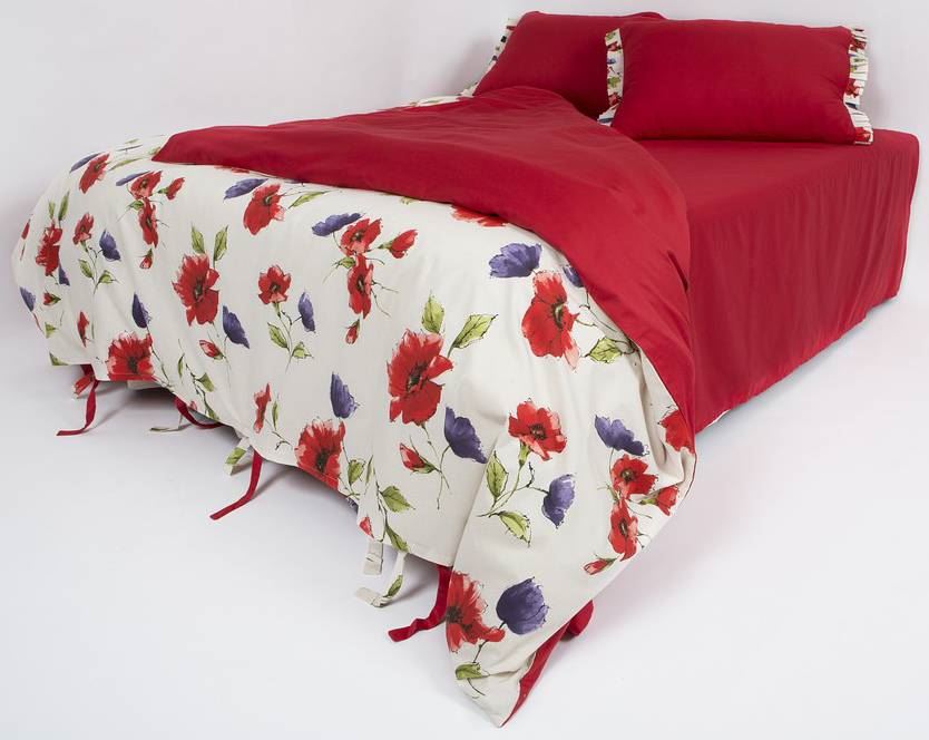 YASTIKMİNDER KOTON GELİNCİK ÇİÇEKLİ KIRMIZI KREM 4 PARÇA NEVRESİM TAKIMI
