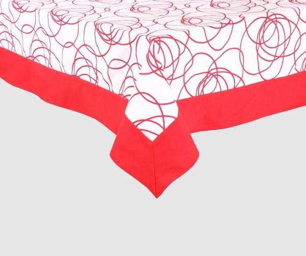 YASTIKMİNDER KOTON BEYAZ KIRMIZI HELEZON DESENLİ 160X160 KARE MASA ÖRTÜ