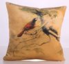 YASTIKMİNDER KADİFE KETEN BEJ BORDO KUŞ BASKILI DEKORATİF YASTIK KILIFI