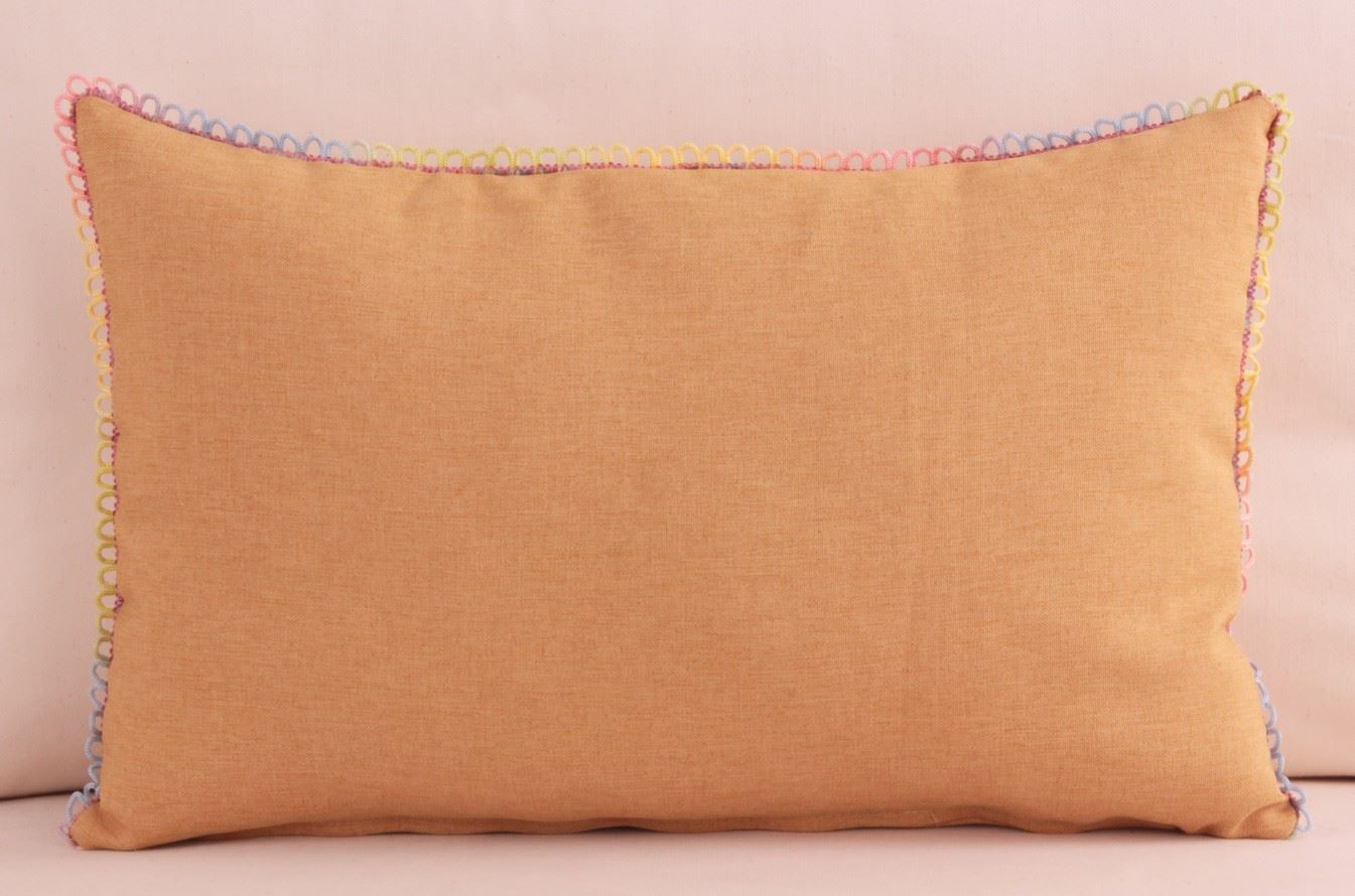 Keten Sarı Oranj Oyalı Dekoratif Yastık Kılıfı