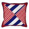 YASTIKMİNDER KOTON LACİVERT KIRMIZI ÇİZGİLİ KARELİ MARİN YAMALI DEKORATİF YASTIK KILIFI