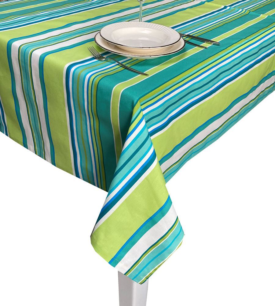 KOTON TURKUAZ YEŞİL ÇİZGİLİ DİKDÖRTGEN MASA ÖRTÜ