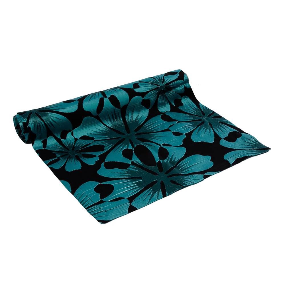 Tafta Turkuaz Siyah Papatya Desen Runner