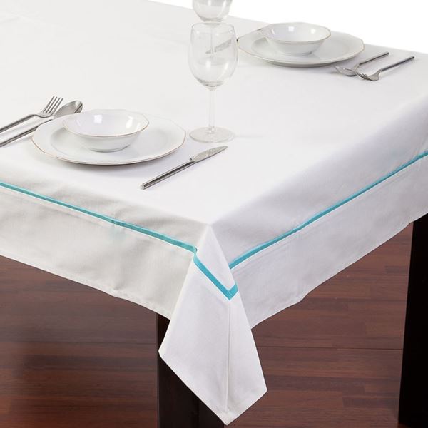 Koton beyaz turkuaz biyeli 160x160 kare masa örtü