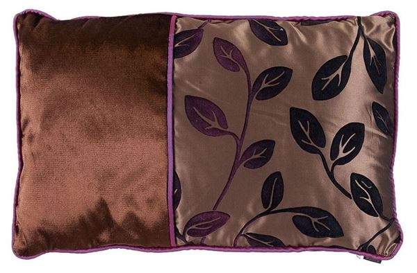Yastıkminder Kadife Tafta Kahve Mor Flok Baskı Dekoratif Yastık Kılıfı
