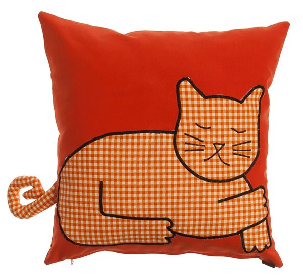 YASTIKMİNDER Koton Turuncu Pötükare Kedi Formunda Aplikeli Kırlent Yastık Kılıfı
