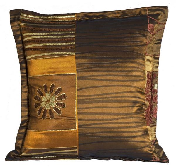 Yastıkminder Tafta Kahve Altın Renk Kulaklı Dekoratif Yastık KILIFI