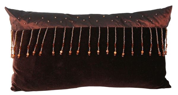 YASTIKMINDER KADİFE TAFTA EL YAPIMI BONCUK PÜSKÜLLÜ KAHVE BIBLO YASTIK