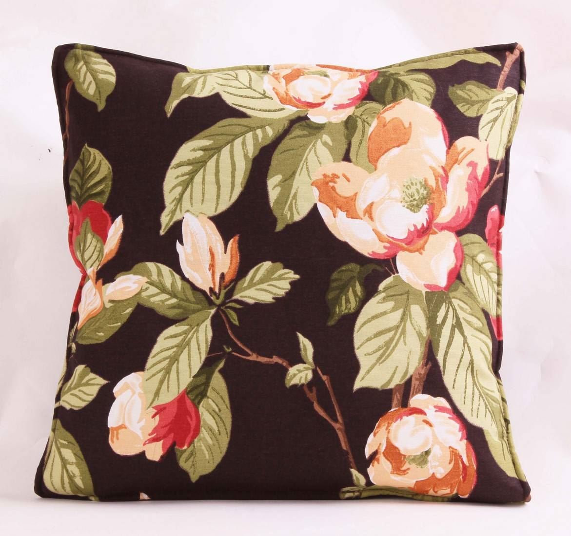 Yastıkminder Koton Kahve Yeşil Yaban Gül Desen Yastık Kılıfı