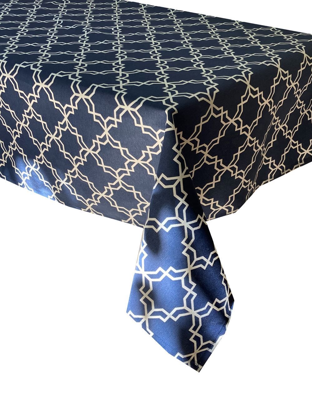 YASTIKMİNDER KOTON LACİVERT BEYAZ GEMOTRİK DESEN DİKDÖRTGEN MASA ÖRTÜ