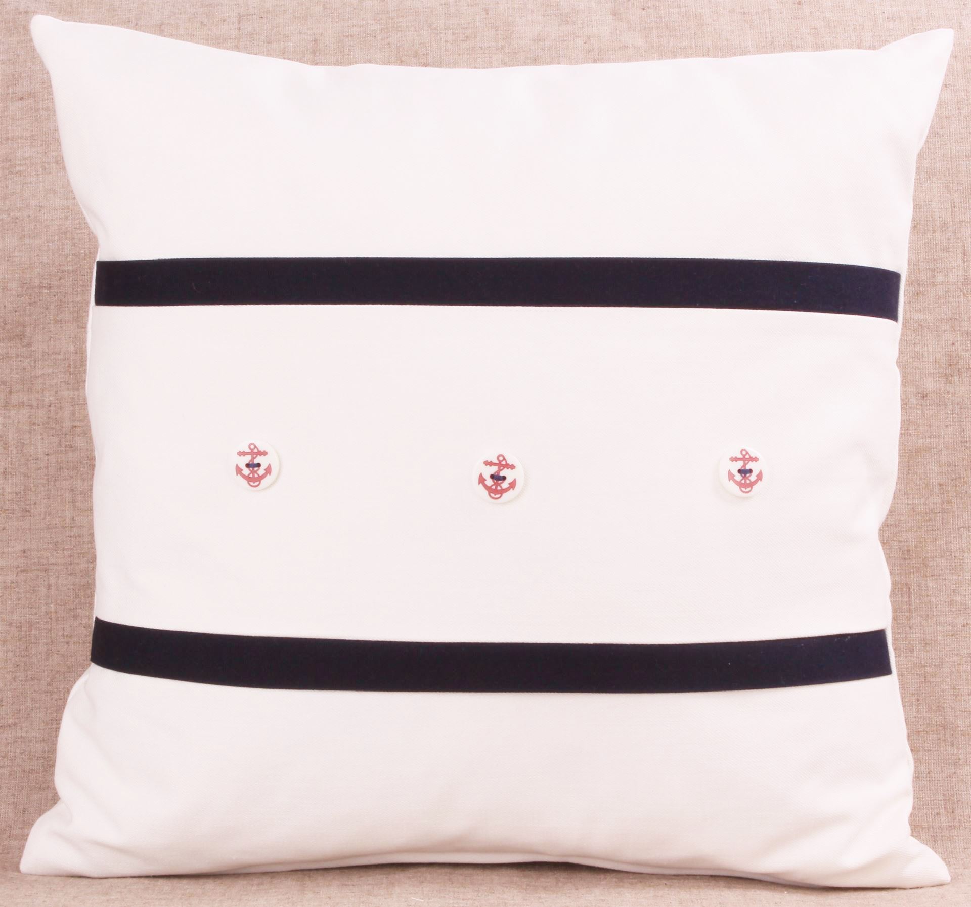 YASTIKMINDER KOTON BEYAZ LACİVERT ŞERİTLER ÇAPA BASKI DÜĞMELI YASTIK KIRLENT KILIFI