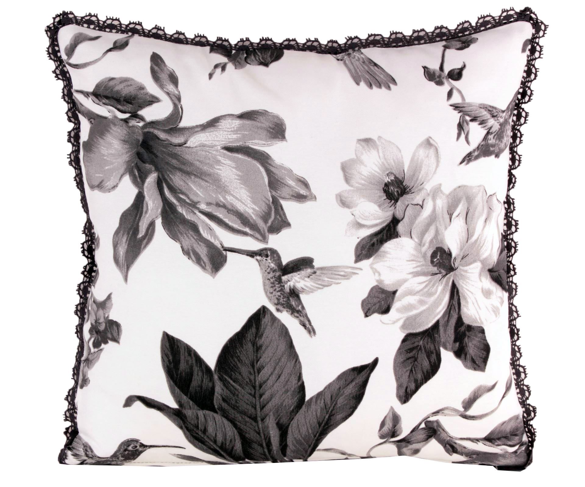 YASTIKMINDER KOTON SIYAH BEYZ ÇIÇEKLER DANTEL ÇERÇEVELİ DEKORATIF YASTIK KILIFI